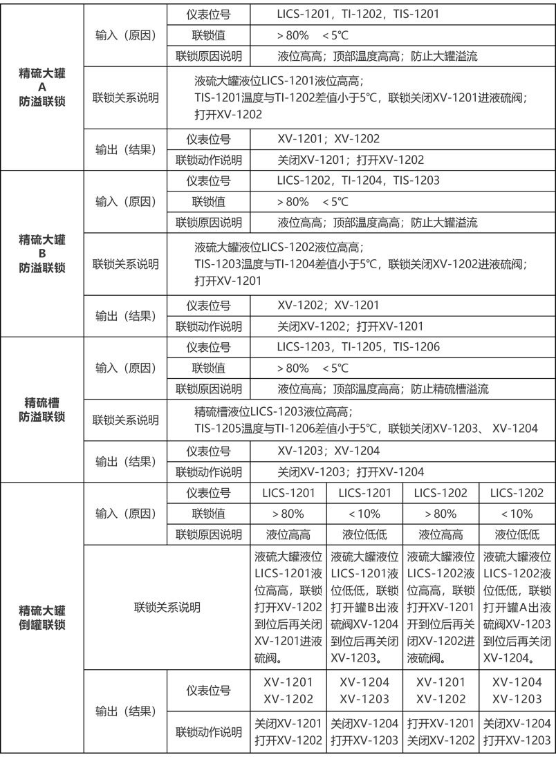 精硫作為裝置生產(chǎn)的原料,為確保原料供應(yīng)的穩(wěn)定性和精硫罐的可靠性,通常會(huì)設(shè)計(jì)兩個(gè)精硫大罐用于儲(chǔ)存精制液硫。精硫大罐的容量根據(jù)裝置規(guī)模和儲(chǔ)存時(shí)間確定,基本的儲(chǔ)存時(shí)間應(yīng)滿足15至30天的用量需求。根據(jù)精硫的儲(chǔ)存時(shí)間差,大罐還可以通過物理沉降的方式,使液硫中的雜質(zhì)進(jìn)一步沉淀至罐底,從而減少系統(tǒng)中的灰分含量。因此,實(shí)現(xiàn)精硫大罐的自動(dòng)倒罐和罐、槽液位的自動(dòng)控制顯得尤為重要。為此,我們專門設(shè)計(jì)了精硫大罐自動(dòng)控制方案。