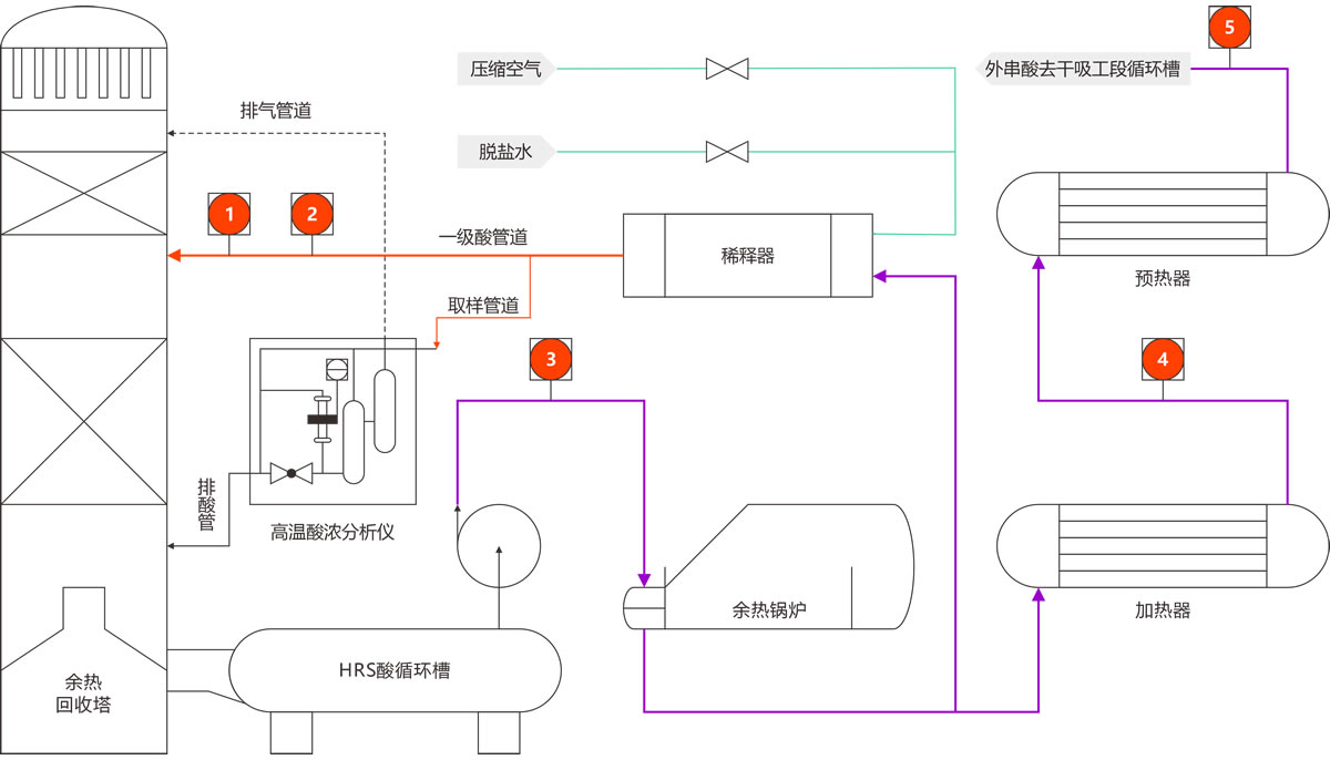 這些設(shè)備適用于多種測(cè)量位置,包括制水再生、干燥酸濃度測(cè)量、一吸酸濃度測(cè)量、二吸酸濃度測(cè)量、成品酸濃度測(cè)量以及余熱回收系統(tǒng)中的酸濃度測(cè)量。