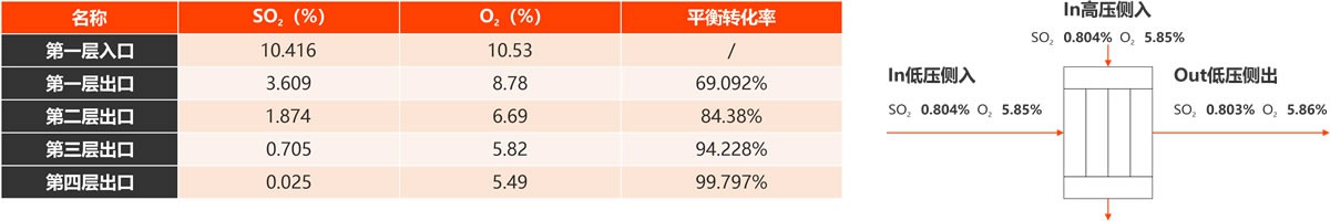 及時了解換熱設備的運行狀況對于保持系統(tǒng)的高效轉化至關重要。通過對比換熱設備低壓側入口與出口的SO2和O2濃度差異,我們可以判斷設備是否存在泄漏問題。