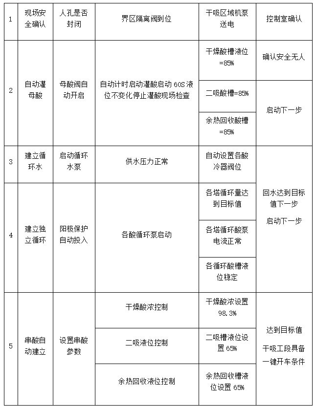 提示:本公眾號展示了部分硫酸裝置的一鍵開車實施技術。由于每套硫酸裝置的工藝流程各不相同,因此無法提供標準版的一鍵開車技術方案。如需實施硫酸裝置的一鍵開車,請與我們聯(lián)系。我們將根據(jù)貴方裝置的工藝特點,定制專屬的一鍵開車實施技術方案,并全程協(xié)助貴方成功實施一鍵開車。