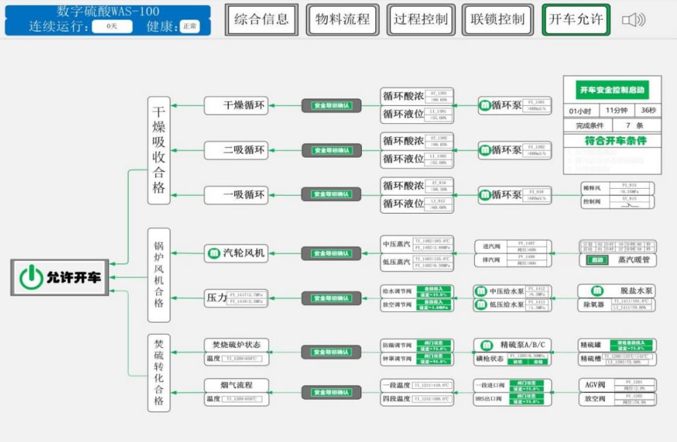 5.數(shù)字硫酸DCS系統(tǒng):在數(shù)字化轉(zhuǎn)型浪潮的推動(dòng)下,全行業(yè)正積極探索硫酸裝置的自動(dòng)化運(yùn)行與一鍵啟動(dòng)方案。禮正來公司緊跟時(shí)代步伐,依托數(shù)字硫酸APP所積累的物料平衡理論及硫酸生產(chǎn)經(jīng)驗(yàn),并結(jié)合自動(dòng)化專業(yè)知識(shí),于2025年3月成功開發(fā)出集一鍵啟動(dòng)、自動(dòng)運(yùn)行和安全檢查功能于一體的數(shù)字硫酸DCS控制系統(tǒng)。