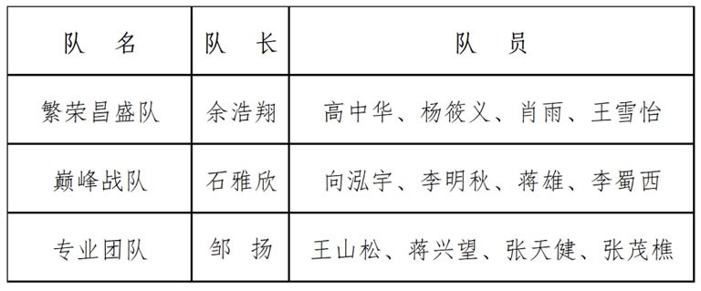 本次比賽分為巔峰戰(zhàn)隊、專業(yè)團隊、繁榮昌盛隊三支勁旅參賽: