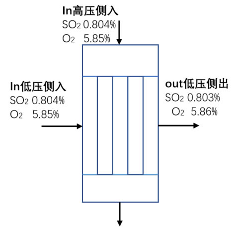硫酸生產(chǎn)過程中,隨著時(shí)間推移,換熱設(shè)備的健康狀況會(huì)逐漸下降,出現(xiàn)泄漏的風(fēng)險(xiǎn)也隨之增加。因此,及時(shí)掌握換熱設(shè)備的健康狀況,對(duì)于保證系統(tǒng)轉(zhuǎn)化率至關(guān)重要。通過比較換熱設(shè)備低壓入口和出口的SO2濃度變化,若SO2濃度增加,則表明裝置存在泄漏。借助硫酸健康分析系統(tǒng),可以分析濃度變化并精確計(jì)算泄漏率。