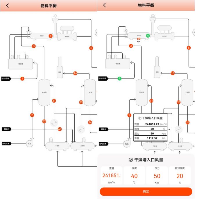 功能三——物料平衡:通過物料平衡功能,我們能夠確定最佳的工藝條件,減少原料的浪費(fèi),降低生產(chǎn)成本,進(jìn)而優(yōu)化整個(gè)生產(chǎn)流程,提升硫酸的產(chǎn)量與品質(zhì)。