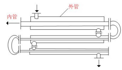 套管換熱器由直徑不同的直管制成的同心套管,并由U形彎頭連接而成。一種流體走管內(nèi),另一種流體走環(huán)隙。
