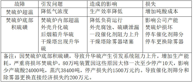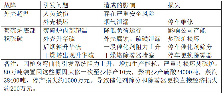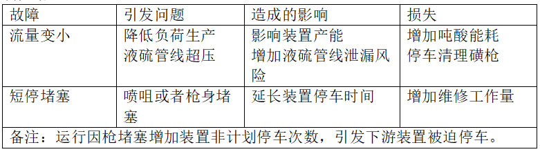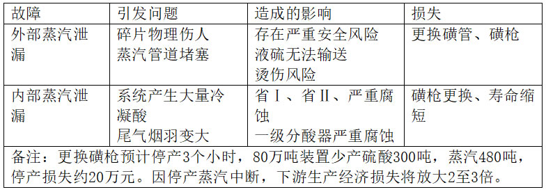 下面是磺槍故障引發(fā)對裝置長周期運行的影響分析。